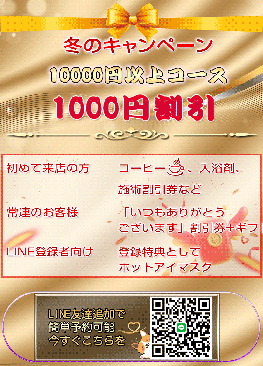 ご都合に合わせてご来店ください! 2025/12/09 当店は料金もリーズナブルかつ明瞭会計となっておりますので、安心してご来店いただけます。サラリーマンビジネス上で身だしなみに気を配ったり、人に清潔感や爽やかさで好印象を与えることは必須。当店はそんな日々をたくましく生きる男性の「自分磨き」をお手伝いする店です。ただつるつる流すだけのアロママッサージ店に飽きた方、コリや筋肉をしっかりほぐして欲しい方、リンパマッサージをして欲しい方に特にお勧めの技術を提供しております。 |